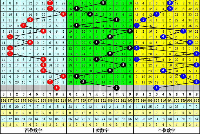 从以上统计可以看出,在组选分布图中,号码0开出17次,1开出10次,2开出13次,3开出17次,4开出13次,5开出9次,6开出23次,7开出8次,8开出12次,9开出10次,号码奇偶比为54:78,奇号走势较冷,本期看好奇号回补,奇偶比为2:1;号码大小比为:62:70,大号表现相对较冷,本期看好大号逐渐回补,大小比参考2:1。